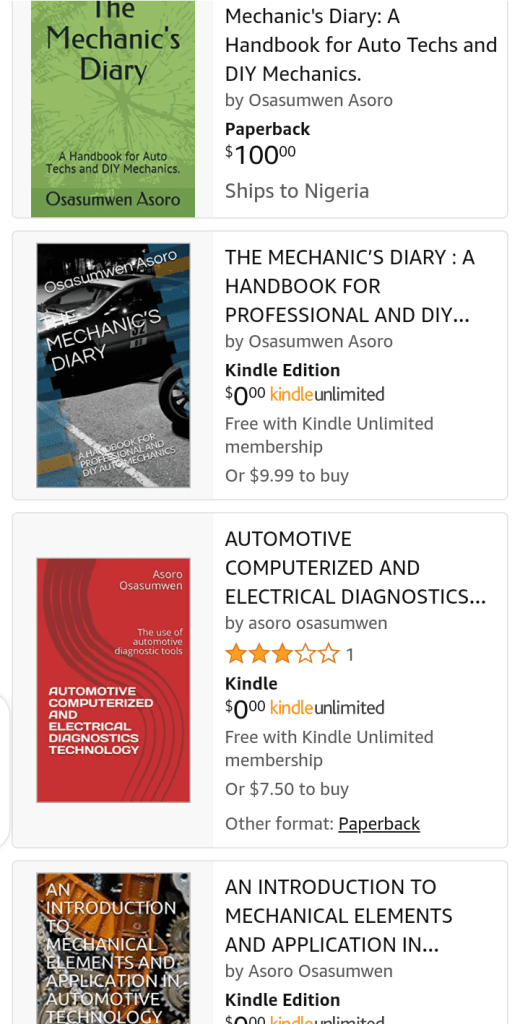 Automotive Engine Diagnostics, Repairs and Management Technology: https://www.amazon.com/AUTOMOTIVE-COMPUTERIZED-ELECTRICAL-DIAGNOSTICS-TECHNOLOGY-ebook/dp/B089G8RNBQ/ref=mp_s_a_1_3?dchild=1&qid=1614140496&refinements=p_27%3Aasoro+osasumwen%2Cp_n_feature_browse-bin%3A618073011&rnid=618072011&s=books&sr=1-3#